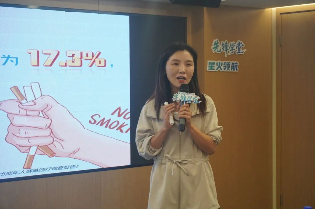 罗湖区青少年控烟志愿队负责人周畅通过个人参赛项目的介绍,现场邀请评委陈纪森老师进行点评,提出优化的宝贵建议。同时也分享了志愿服务大赛的实战经验,真诚地向大家传递着“实战技巧”,为即将参赛的团队提供有力参考。